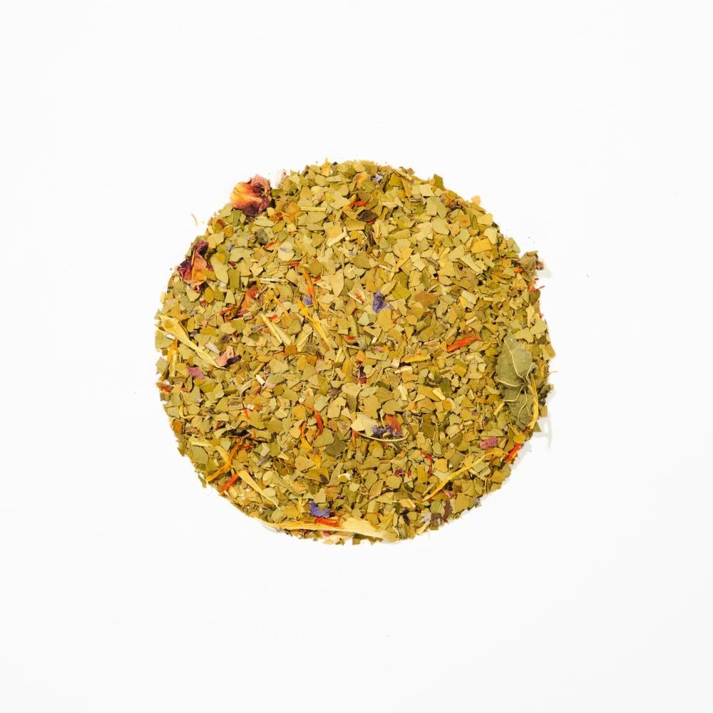 المكونات : متة خضراء، ورد، بتلات زهور حمراء، بتلات القرطم، بتلات الرمان، بتلات أزهار القطيفة