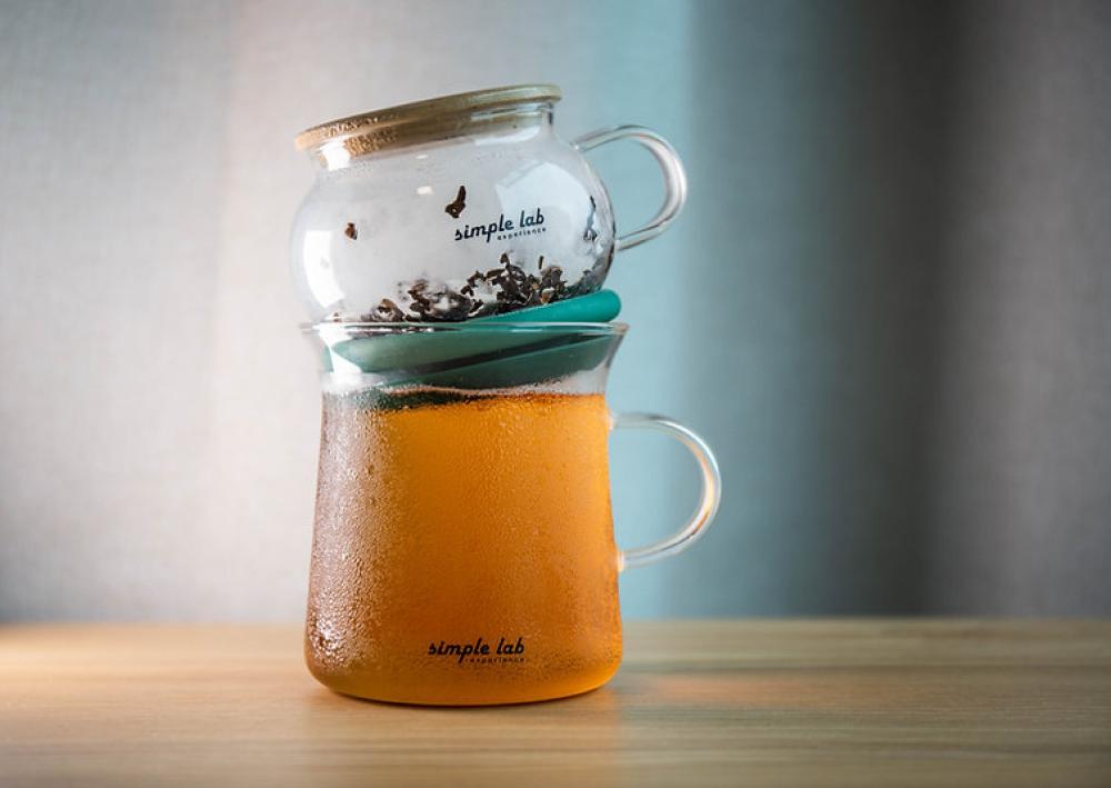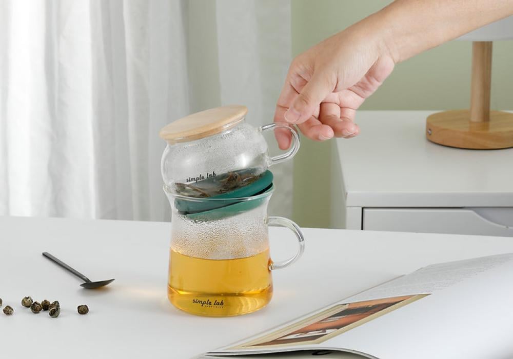 ميل جهاز التحضير العلوي قليلاً، وسيقطر الشاي الجاهز إلى الكوب السفلي تلقائيًا. ضع جهاز التحضير العلوي على غطاء الخيزران لإعادة ملئه مرة أخرى، واستمتع بالشاي الخاص بك!