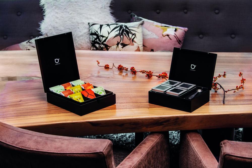 قم بتخزين الشاي الخاص بك بأناقة مع صندوق الشاي الأسود هذا. يحتوي صندوق الشاي على 4 علب وقد تم تصميمه خصيصًا لتخزين الشاي. هذا يحافظ على الشاي طازجًا لفترة أطول ويحتفظ بنكهته. استخدمي الملعقة الصغيرة المصاحبة لعيار الشاي و التعبئةمن الصندوق. يمكنك أن ترى بالضبط نوع الشاي الموجود في أي صندوق من خلال النوافذ الشفافة الصغيرة. ومصمم بطريقة تجعل الغطاء سهل الفتح. صندوق الشاي مصنوع من الخيزران وله مظهر أنيق بفضل لونه الأسود غير اللامع. يجب أن يكون لمحبي الشاي الحقيقي!