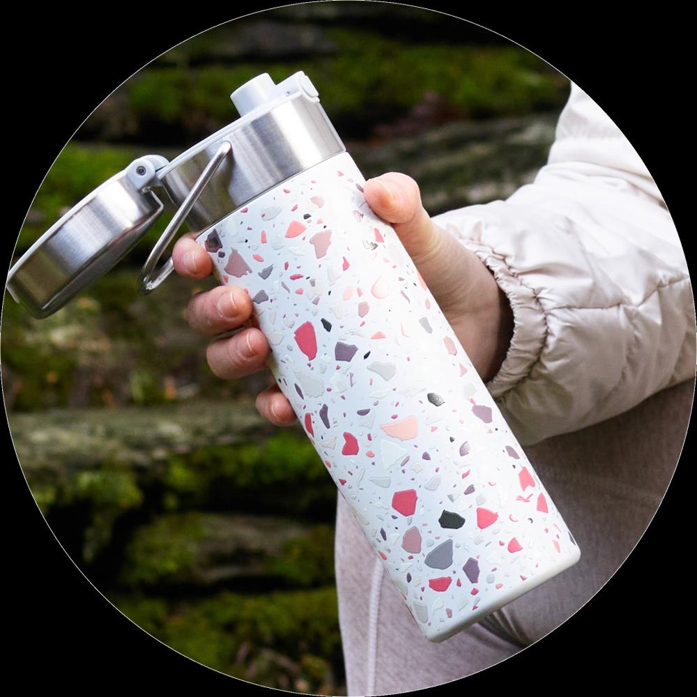 حافظة حرارة مع اطار المزدوج للستليس ستيل مزينة ببراعم الكرز الياباني للمحافظة على دفئ مشروبك و اعطاء جمالية للحافظة
